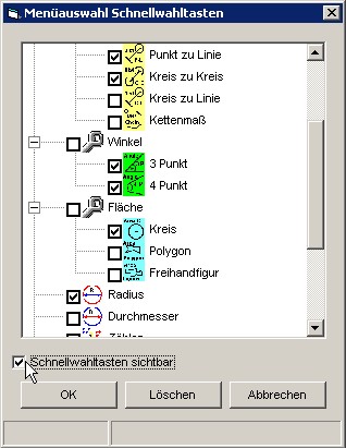 Mit der Option Schnellwahltasten können Sie die Menüpunkte,