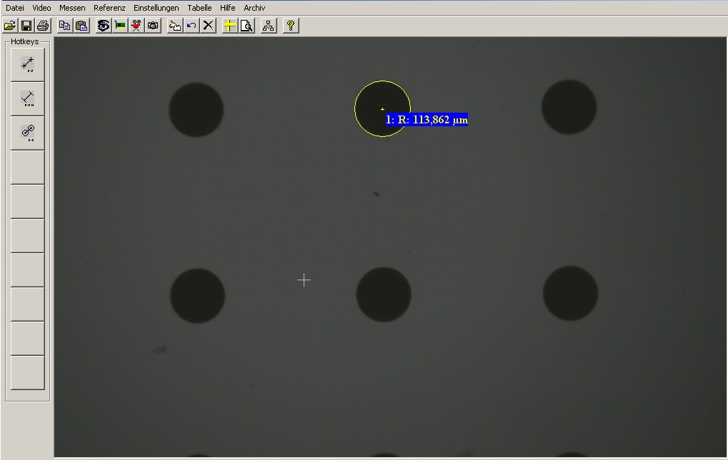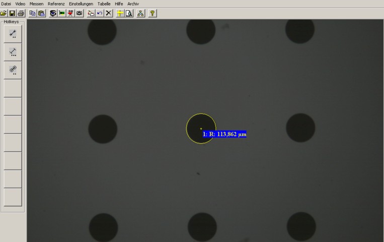 Carry out a measurement, for example of a radius, and complete this with a click of the right mouse button. Then move the stage a little in X and Y direction. The object and the graphic have to move